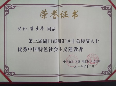 周口風機”品牌為己任,經(jīng)過一年來的努力奮斗,在12月20日,被中共川匯區(qū)委、川匯區(qū)人民政府授予“周口市川匯區(qū)優(yōu)秀非公有制企業(yè)",李生華董事長個人被評為“第三屆周口市川匯區(qū)非公經(jīng)濟人士、優(yōu)秀中國特色社會主義建設者”。