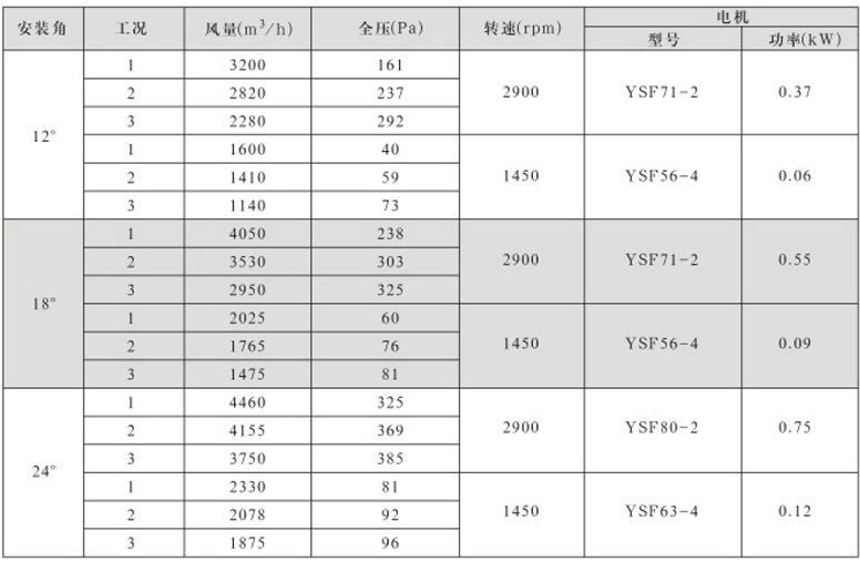 DTF(R)-6.3(9葉)系列地鐵、隧道軸流風機性能表