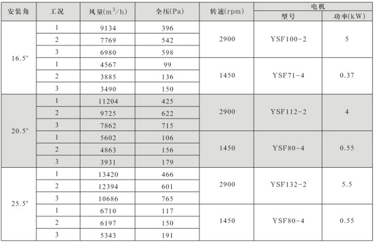 DTF(R)-5(9葉)系列地鐵、隧道軸流風機性能表